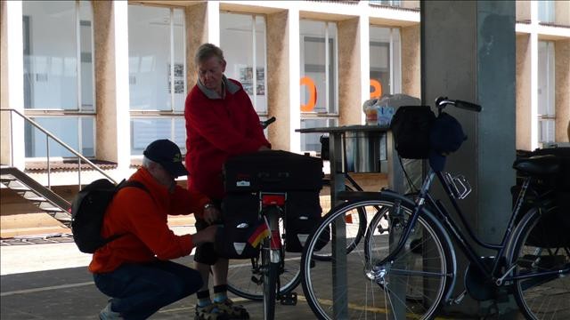 每一位頭髮都花白了,卻各個皆精神奕奕;以車後馱負著的行李數量看來,是要到遠方去旅行吧!
