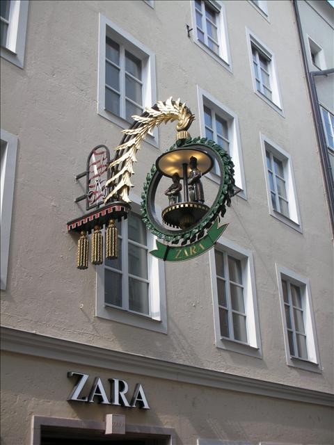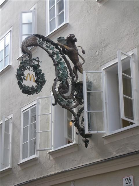 薩爾斯堡最熱鬧的蓋特萊德巷,鑄鐵製招牌,一眼即可判斷出商家的營業項目。
