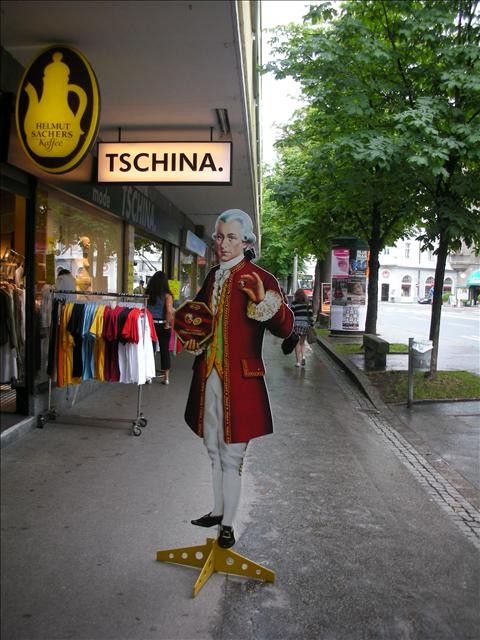 一離開薩爾斯堡火車站,隨處皆可遇見莫札特先生在推銷巧克力!